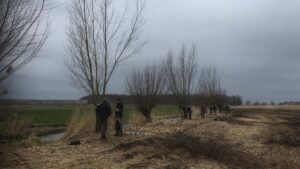 Terwijl de anderen de tunnels schoonmaken en vullen wordt het maaisel verwijderd. Zo ontstaat er een prachtige aanvliegroute voor de oeverzwaluwen. Afgelopen jaar hebben er ongeveer 50 paartjes een nest gehad.