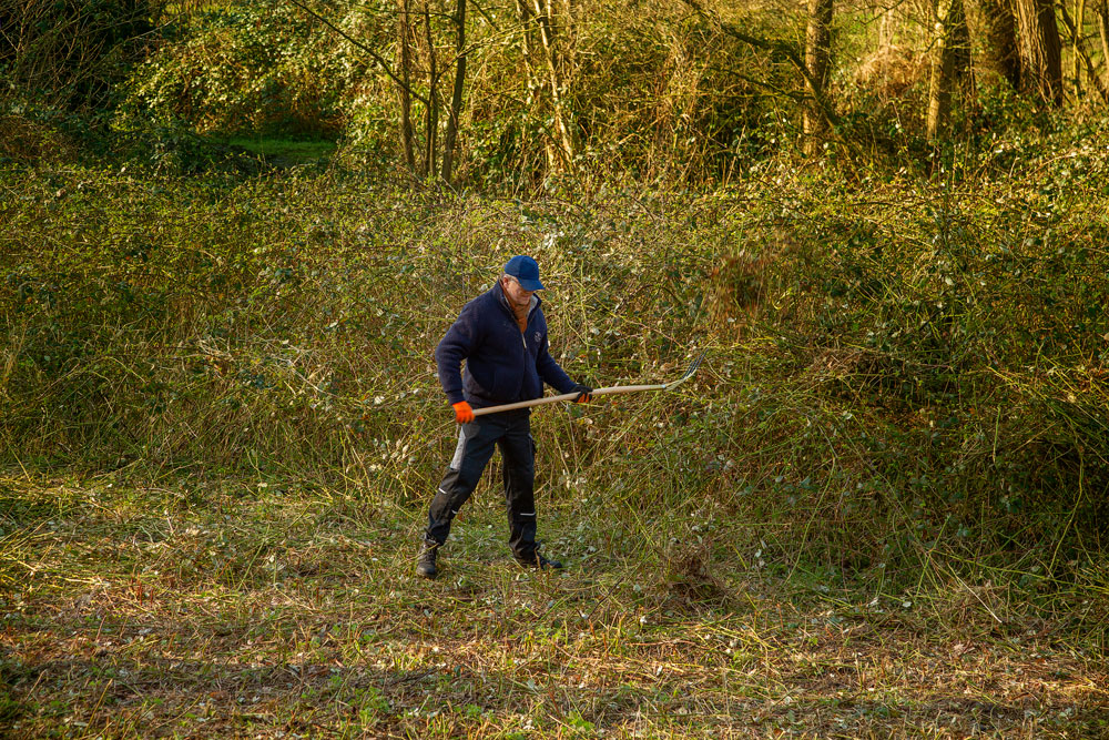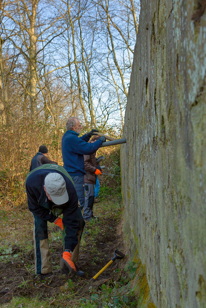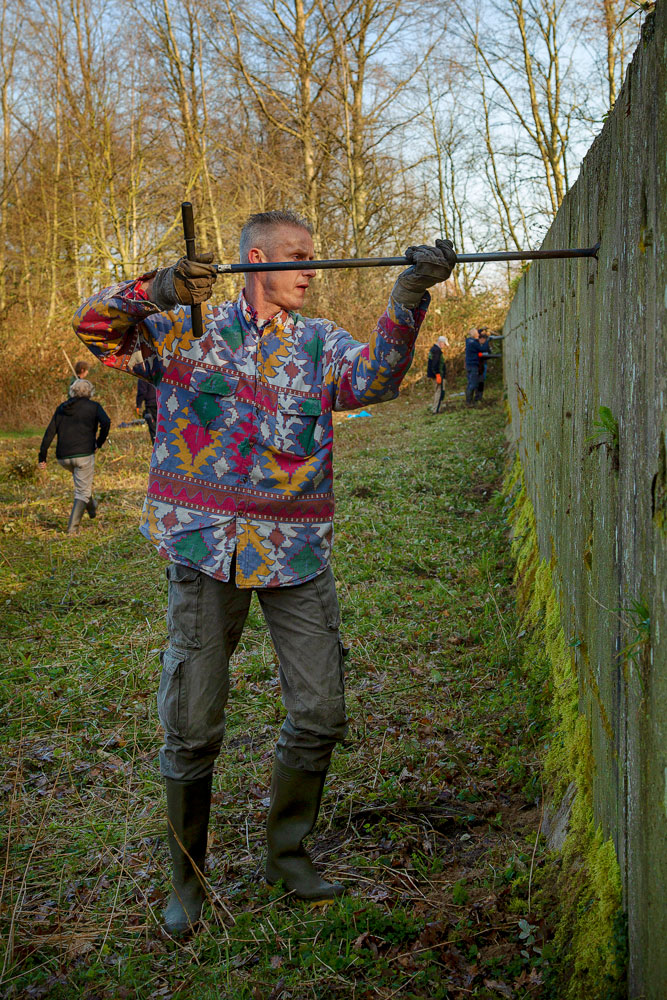 Voor deze wand staat een enorme hoeveelheid bramen die onze voorzitter Jan Loggen van te voren weg maait.