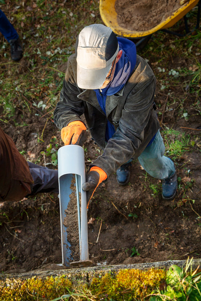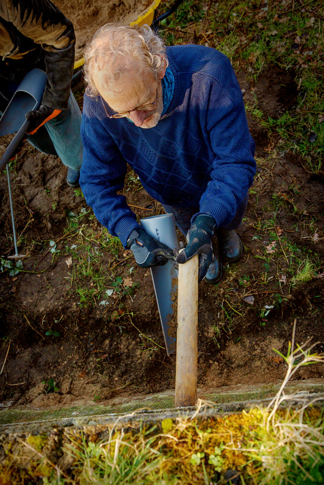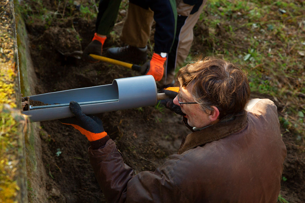 Net voordat het voorjaar begint maken wij deze tunnels schoon. We halen het oude zand er uit en vullen ze met nieuw zand. Het nieuwe zand wordt goed aangedrukt zodat de zwaluwen een lekker stevig hol kunnen graven voor het nest.