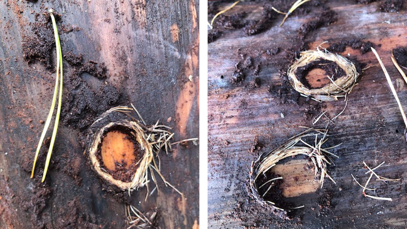 Vorig jaar oktober zijn er in Spanderswoud tijdens de Workshop Natuurtechnisch Bosbeheer enkele tientallen Grove dennen (Pinus Sylvestris) omgetrokken. Het is interessant om te zien wat er met de ‘omgewaaide bomen’ gebeurt. De dode bomen bieden aan vele soorten insecten, schimmels en planten huisvesting. Een dode boom vormt een ecosysteem op zich.